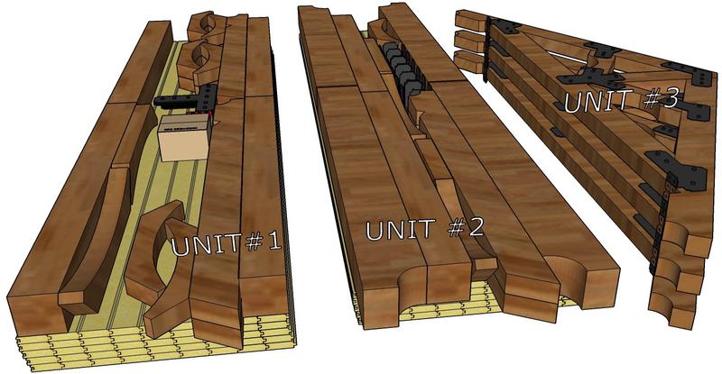 Unit (2) will contain more 2"x6" Roof Decking/Sheathing, Girders, Rafters, Timber Knee Braces & Post Brackets.